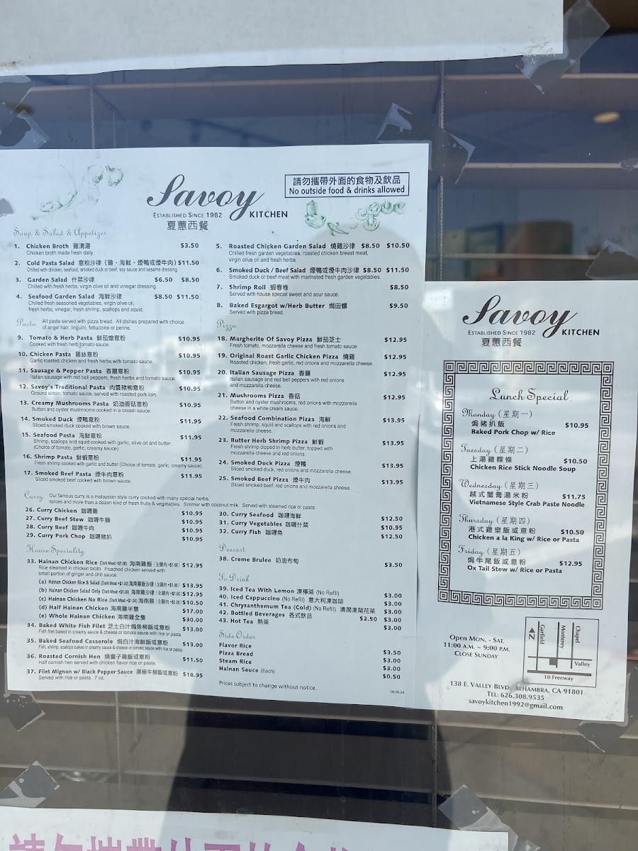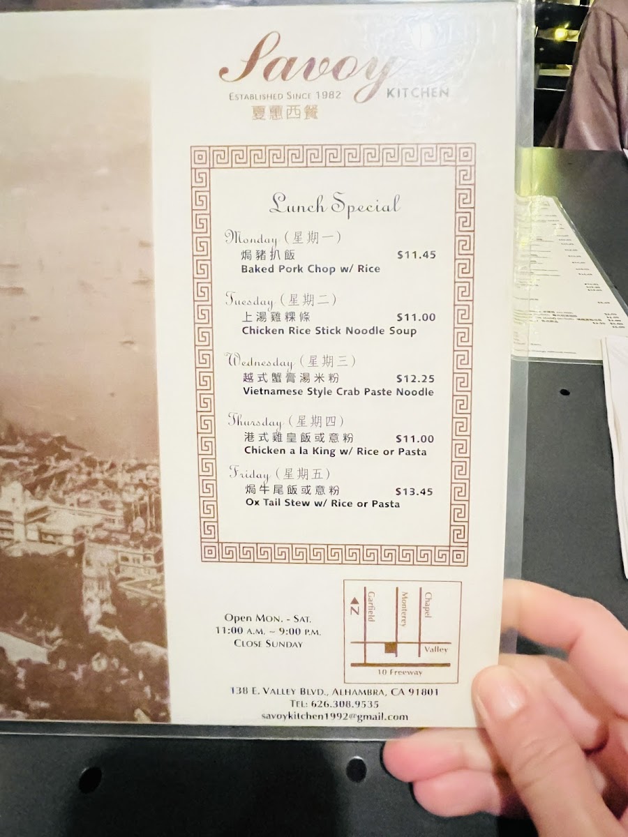 Savoy Kitchen Menu